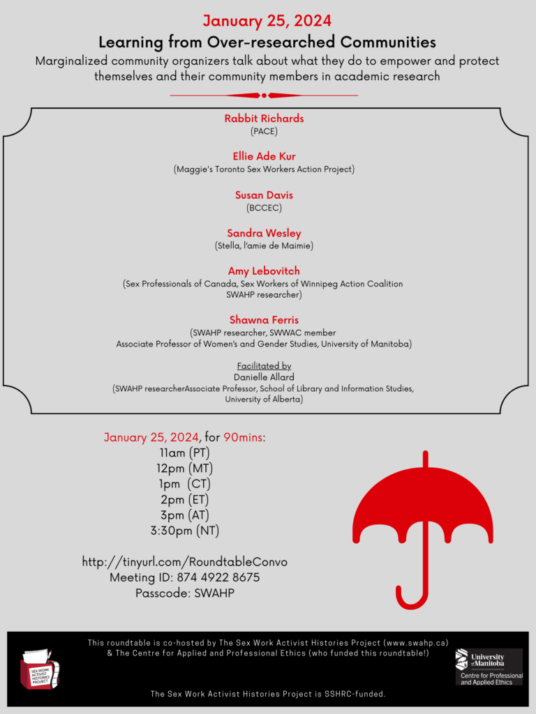 On January 25th, 2024, we had our inaugural public event for Ecosystems for Community Research and Record Keeping, the Social Justice Research Project! This roundtable included experts and community organizers talking about what they do to empower and protect themselves and their community members in academic research.